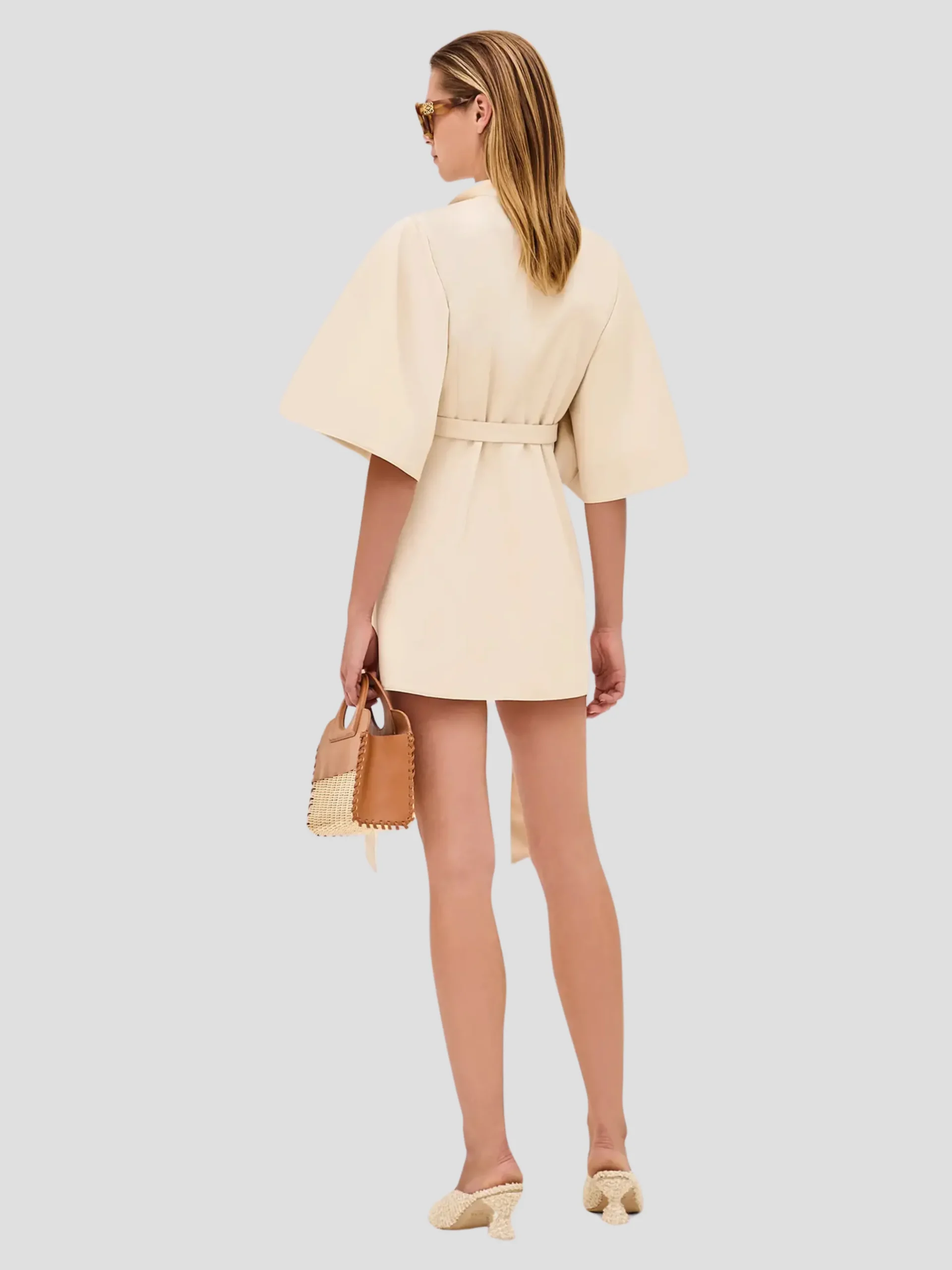 The Corya Dress in Beige offers a timeless and versatile addition to any wardrobe. With its elegant design and neutral color, this dress can easily be dressed up or down for any occasion. Crafted from high-quality materials, it provides both comfort and style. A must-have for any fashion-forward individual.