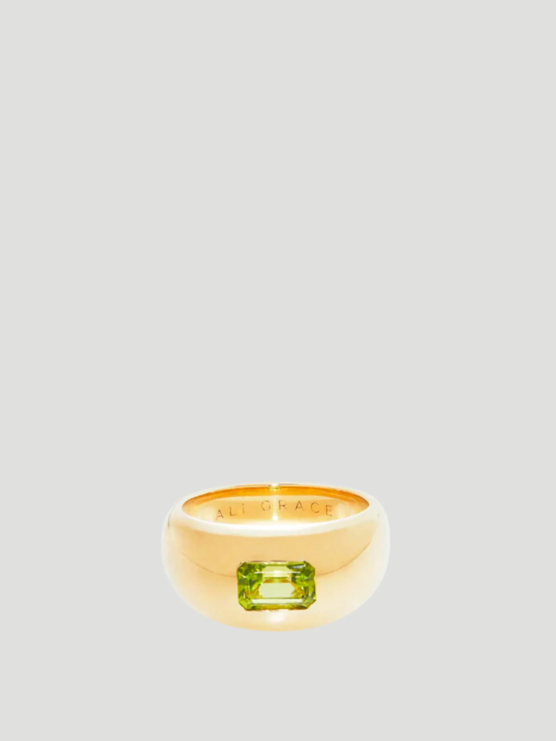The stunning Peridot Bubble Ring from Ali Grace Jewelry is an eye-catching piece. Crafted from rich yellow gold and featuring an emerald cut peridot with an accompanying hidden diamond, it’s the perfect accessory for a layered look. Add a vibrant splash of color to your ring stack and show off your sophisticated eye for detail.