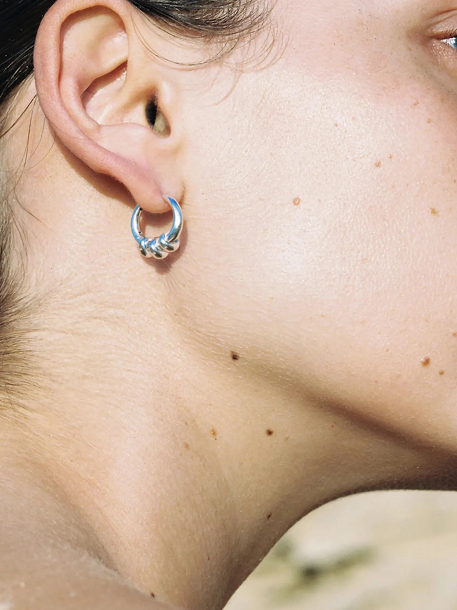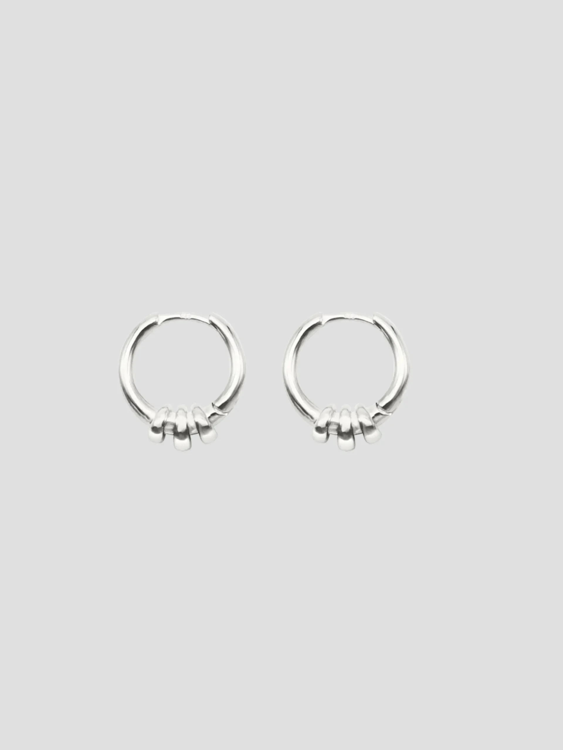 Inspired by the volute elements of the Ionic order and refined for everyday enjoyment, a trio of ringsdecorate these essential hoops madein solidsterling silver with a discreet hinge.